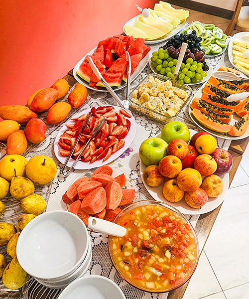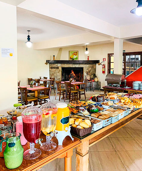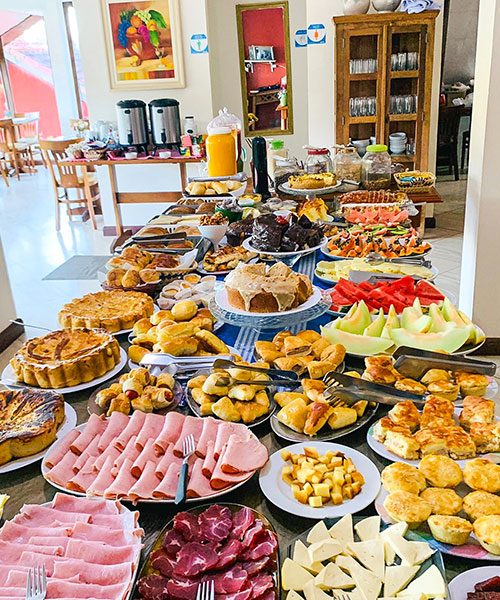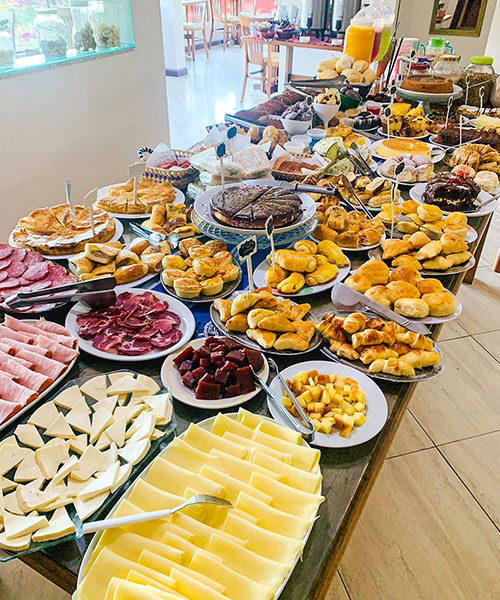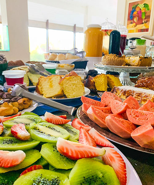 Delicie-se neste buffet completo, com grande variedade de pães, doces e salgados, além de bolos e tortas artesanais, frutas da época e bebidas variadas.