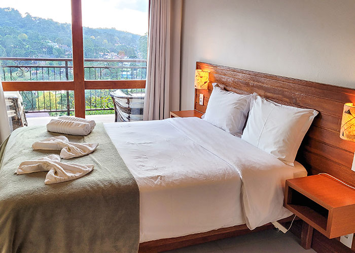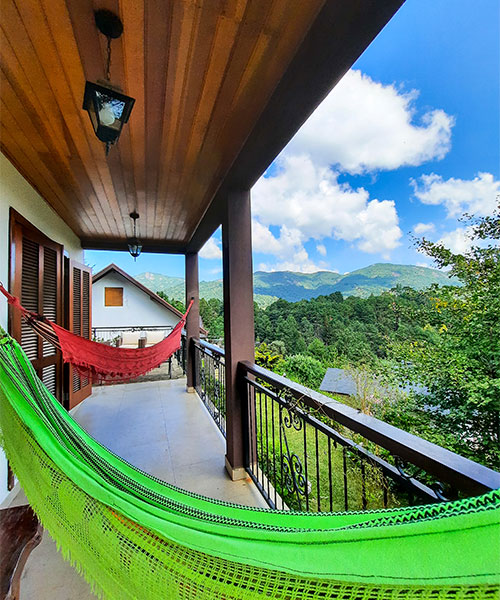 O Chalé 2 tem, como principal diferencial, sua varanda com vista panorâmica da cidade e das montanhas.