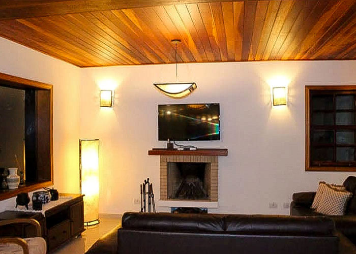 2 suítes com varanda e vista panorâmica da cidade e das montanhas; Camas Queen Size com sistema de aquecimento nos lençóis; Camas auxiliares; Cozinha Completa com utensílios e eletrodomésticos; Sala de estar com Smart TV e canais a cabo; Lareira a lenha e poltronas reclináveis; 2 banheiros completos, chuveiros com aquecimento a gás e ducha higiênica; 1 lavabo; Varanda térrea com redes de descanso; Deck privativo com móveis, lareira externa e vista das montanhas.